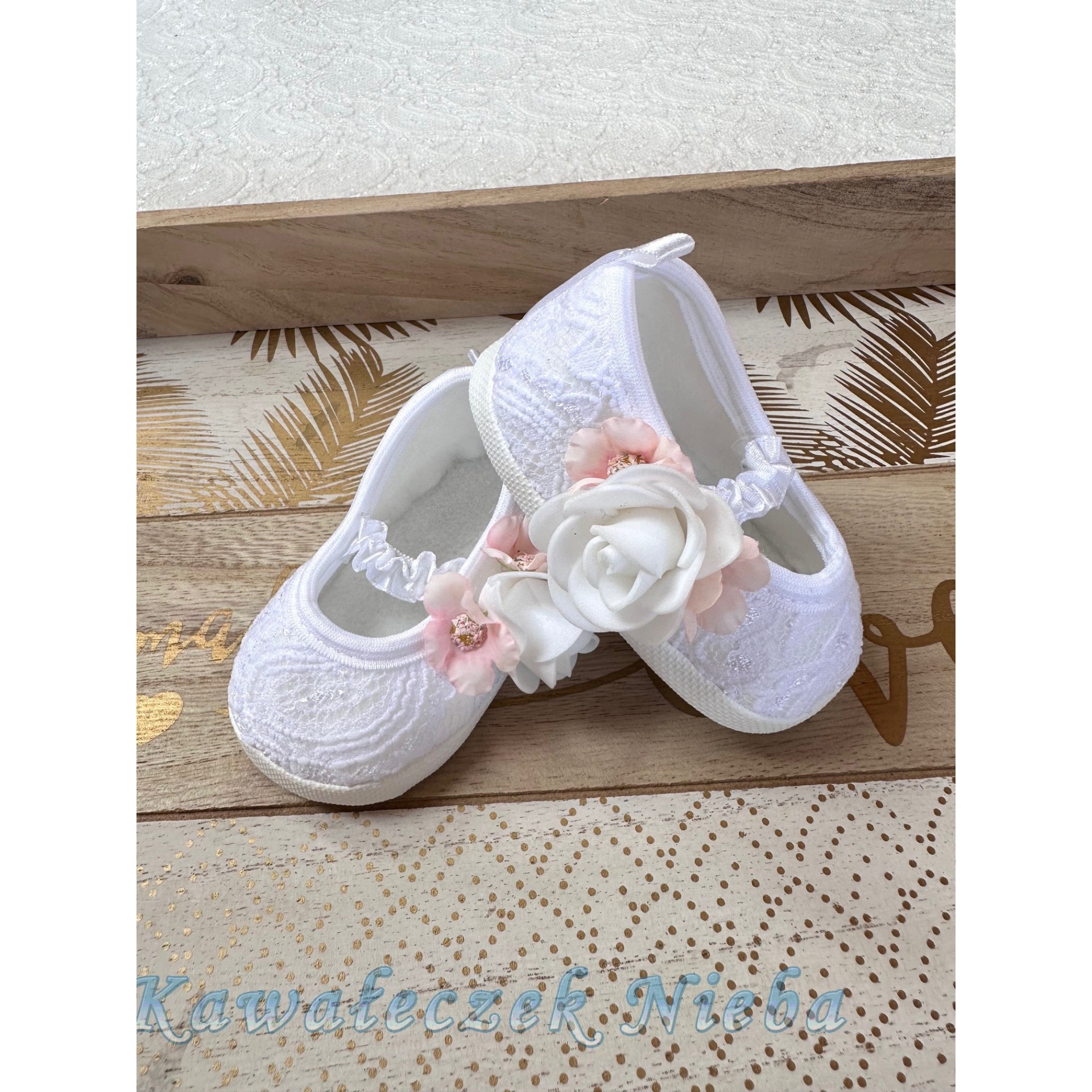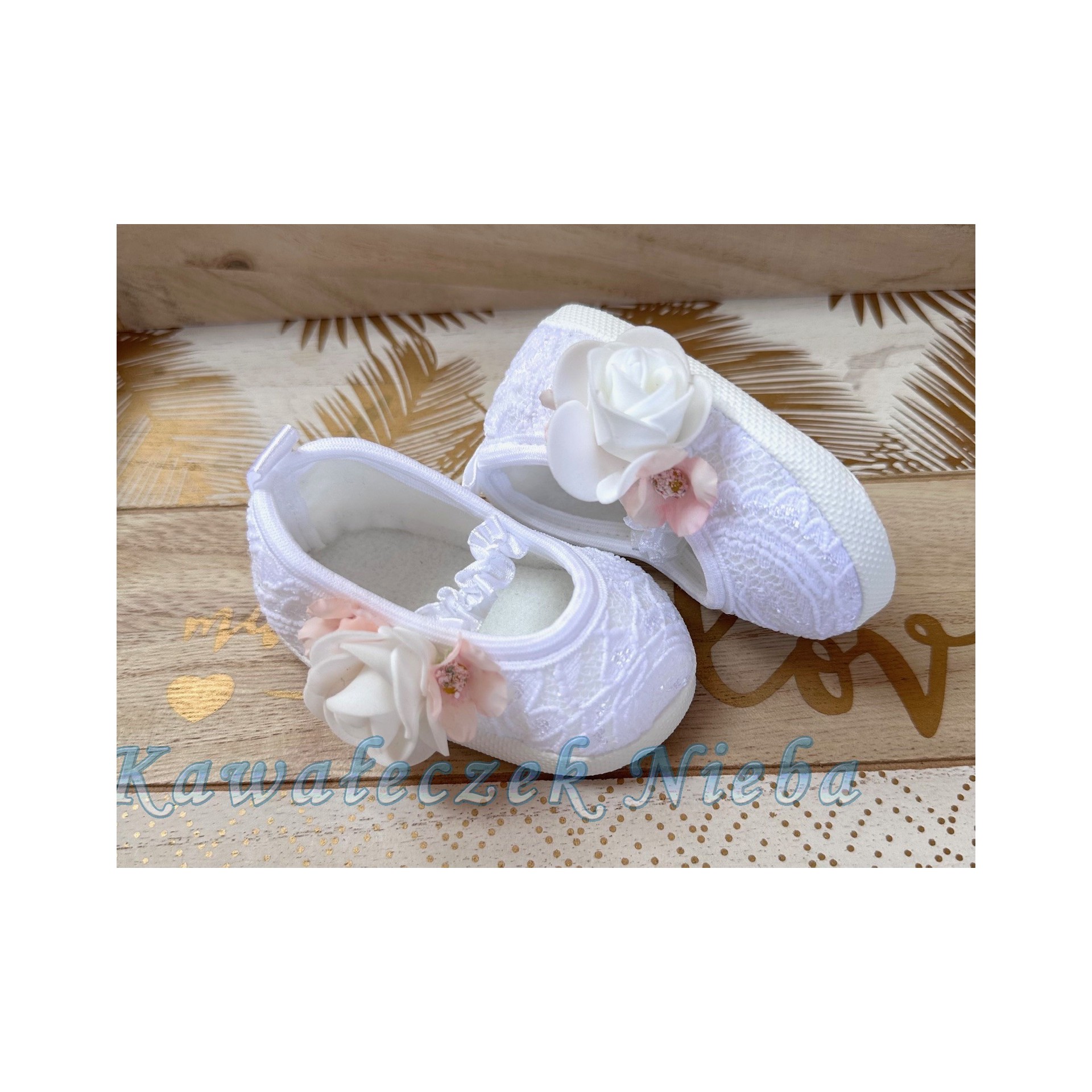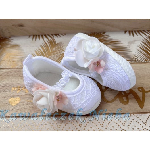 Baletki koronkowe Różany bukiecik - Białe