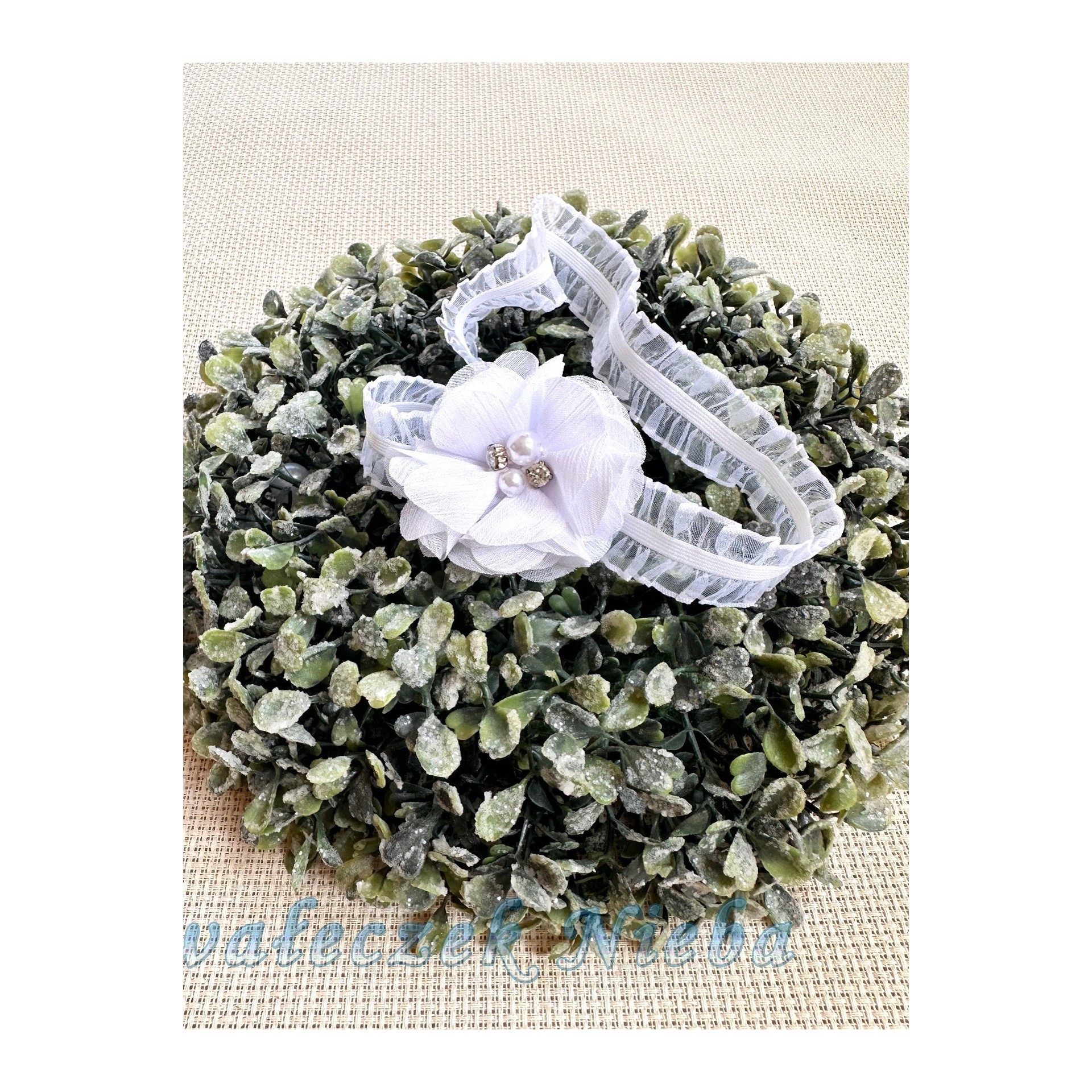 Urocza, delikatna opaska do chrztu w kolorze białym.