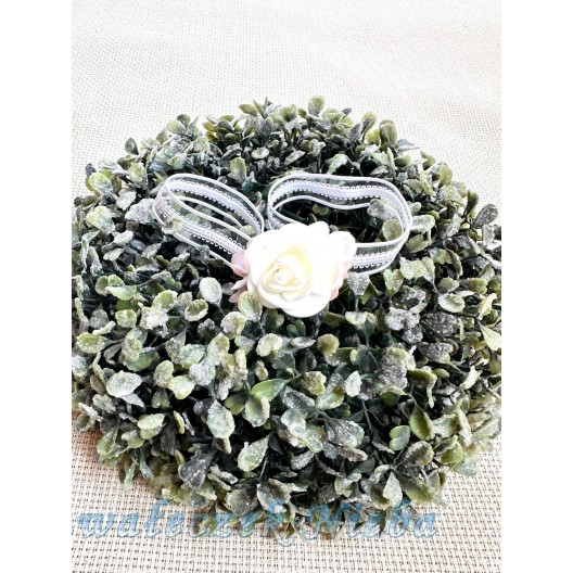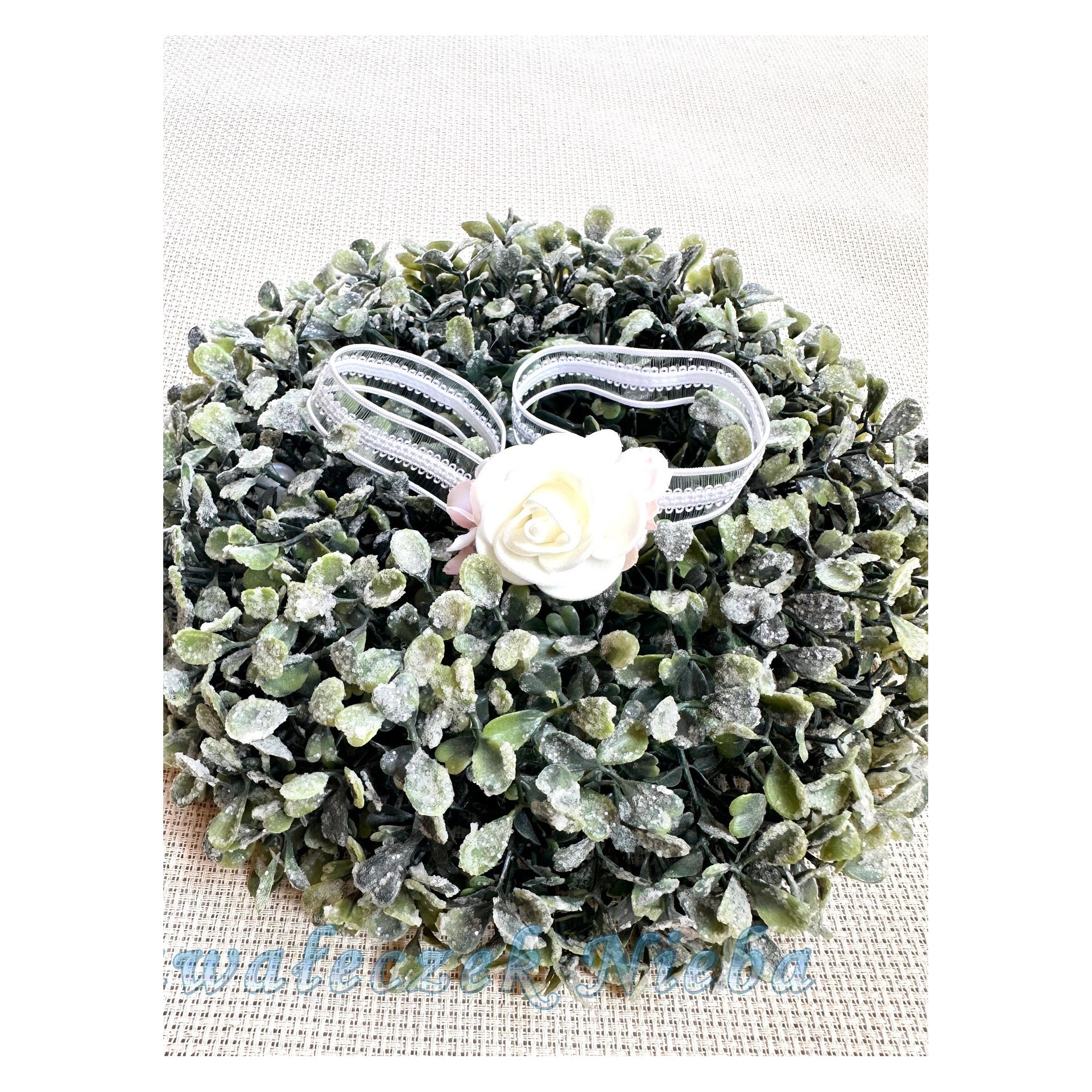 Urocza i miła w użytkowaniu opaska do chrztu uszyta z delikatnej, gumowanej tasiemki udekorowana przepięknym bukiecikiem w kolorze ivory. Świetnie pasuje do bucików z tym samym motywem kwiatowym.
